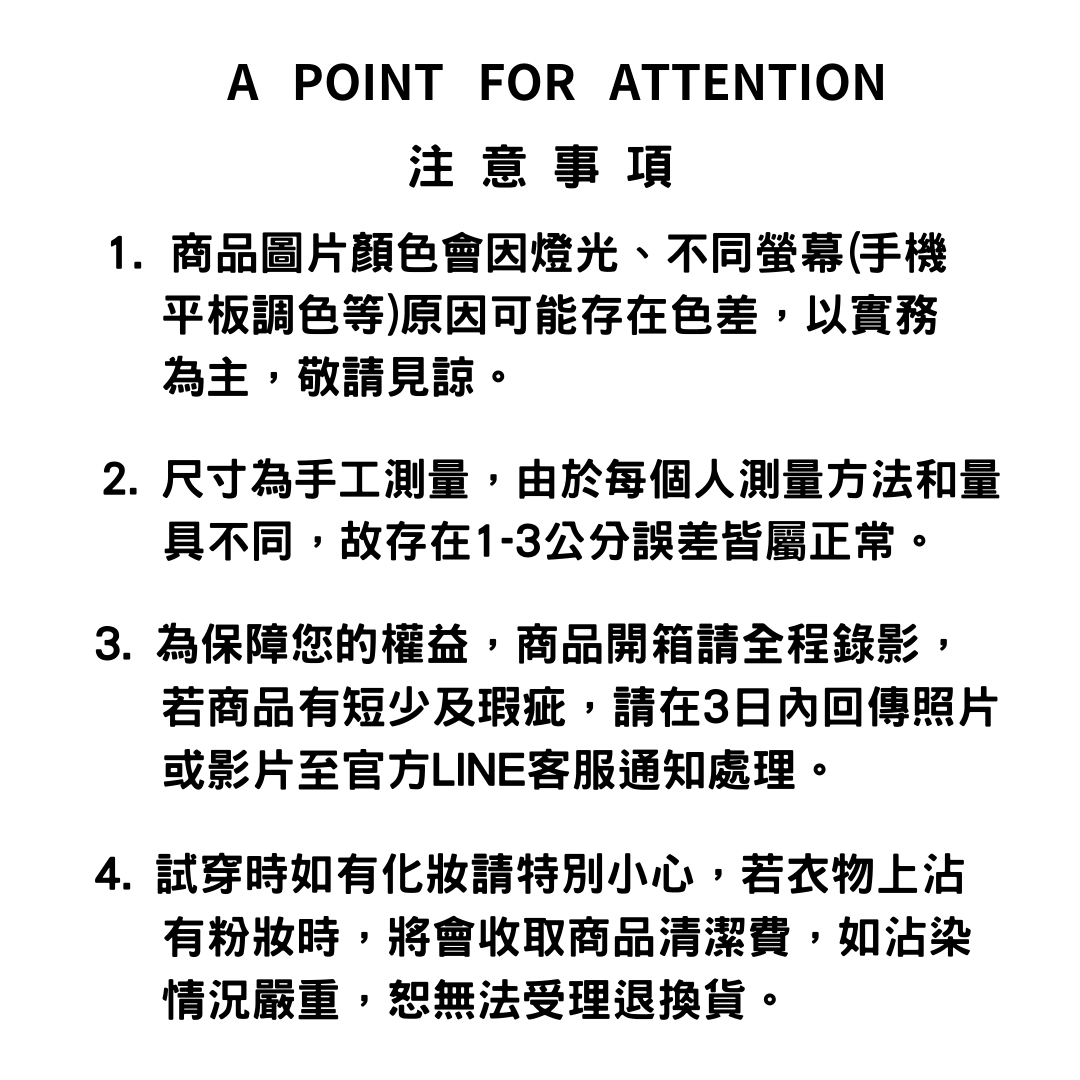 | 溫馨提醒 : 由於手工測量方式不同,存在1-3cm誤差,屬於正常,建議只供參考,若有疑問請聯繫官方line客服 | ||||
